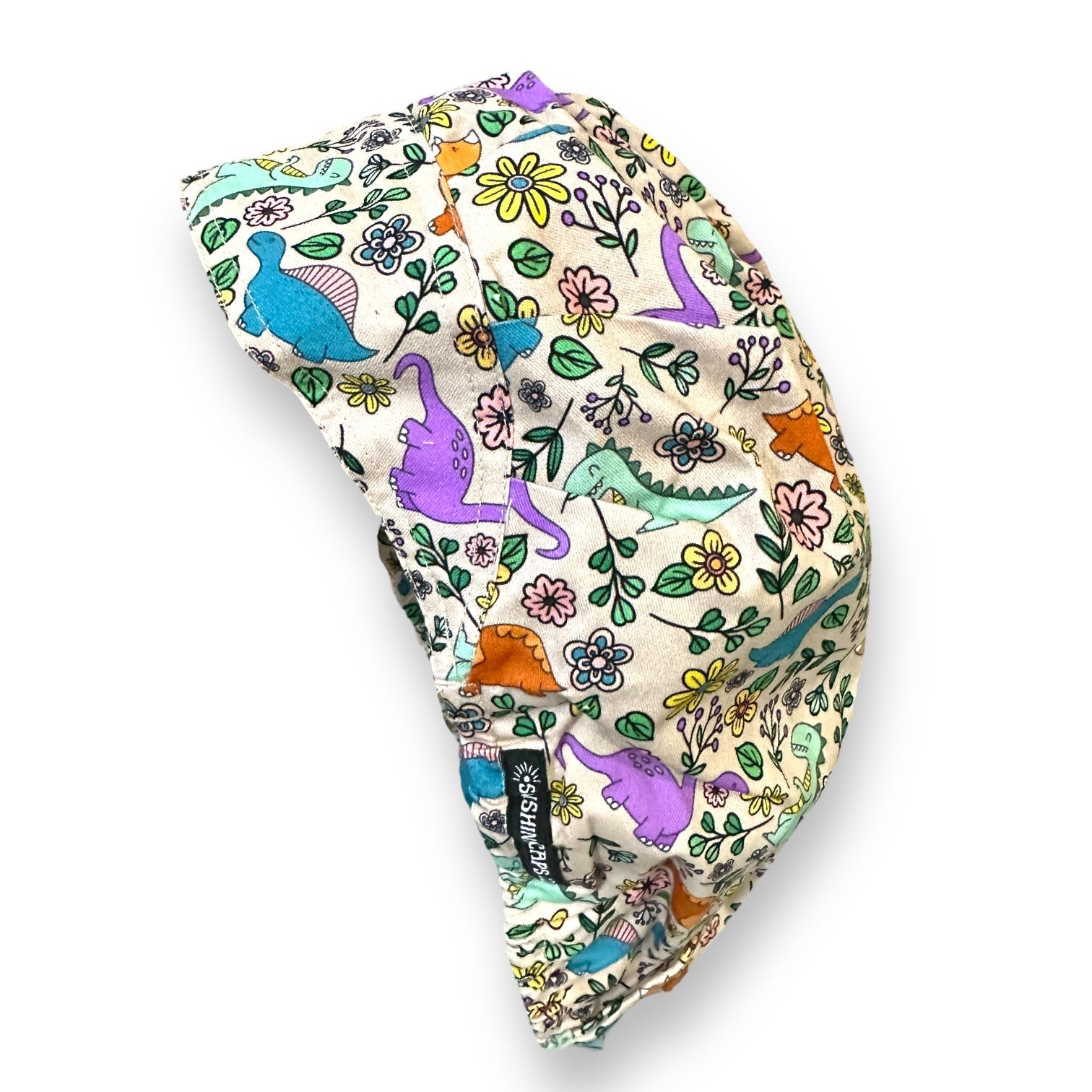 Our Dino Floral Bouffant Scrub CapĀ combines the charm of dinosaurs with a cute floral pattern.