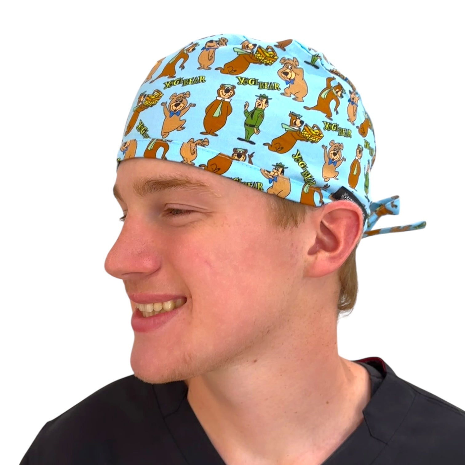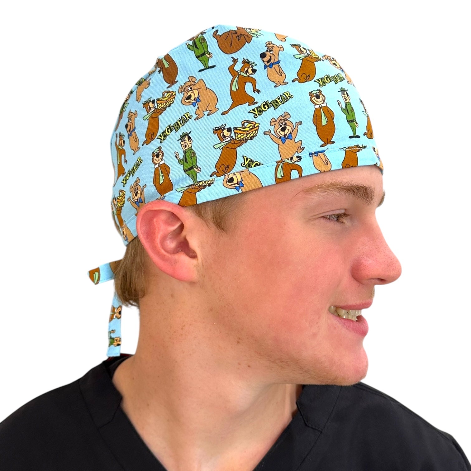 Tie-Back: A unisex surgical scrub cap that offers a little more room than our classic cap. Short-medium length hair can be tucked in for full coverage or worn out the back. It can be flipped along the edge, or left unfolded. A sweatband runs along the forehead. 100% Cotton