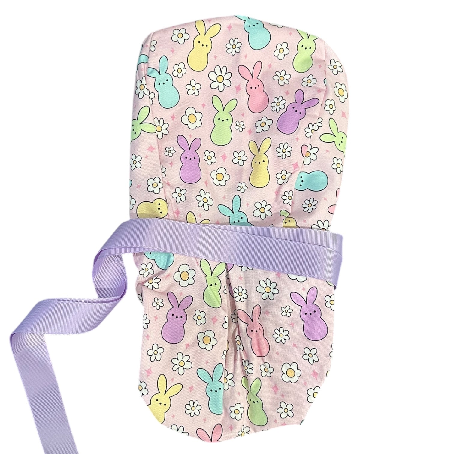 Bouffant: A full coverage surgical cap for almost any length of hair. Wide band tapers across the front. Adjustable elastic cord-lock in back. 100% Cotton. Available with a satin-lined interior to protect your hair against frizz & breakage.