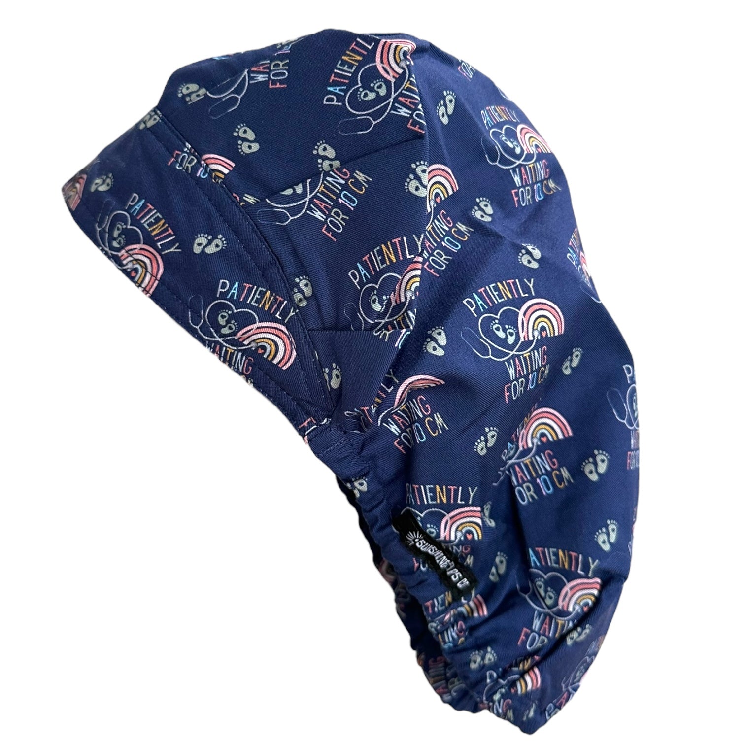 Tie-Back: A unisex surgical scrub cap that offers a little more room than our classic cap. Short-medium length hair can be tucked in for full coverage or worn out the back. It can be flipped along the edge, or left unfolded. A sweatband runs along the forehead. 100% Cotton