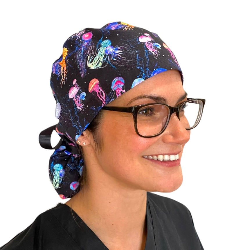 jellyfish Ponytail Scrub Cap for Women, By Sunshine Caps Co.