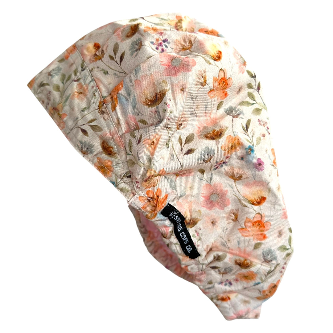 zen floral Ponytail Scrub Cap for Women, By Sunshine Caps Co.
