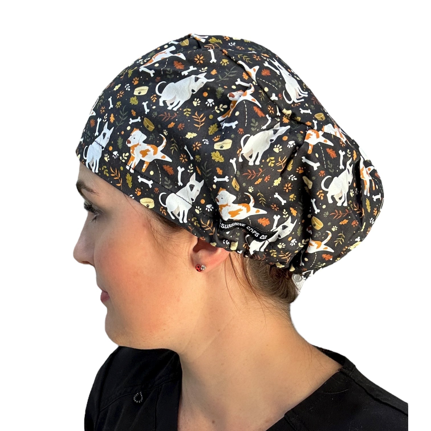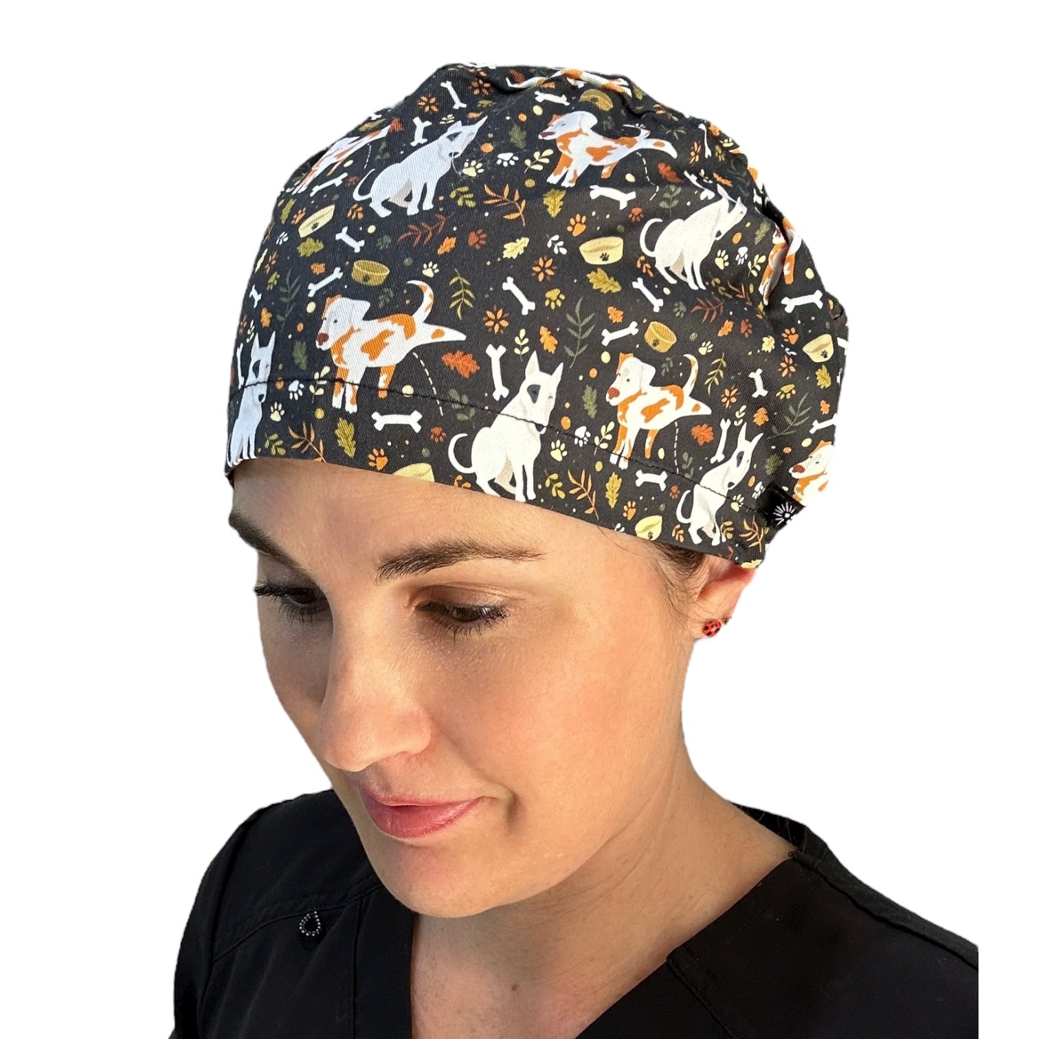 Celebrate fall and your love for furry friends with our Dog Days of Fall Euro Scrub Cap! Featuring playful pups, bones, and autumn leaves, this print is both fun and festive — a cheerful way to bring personality to your workday.