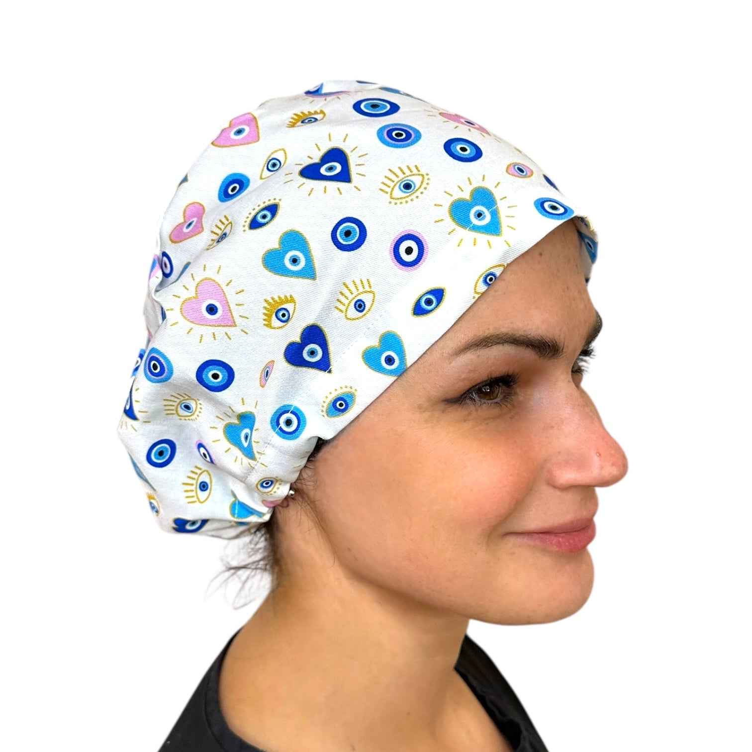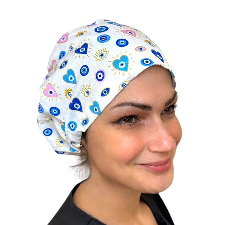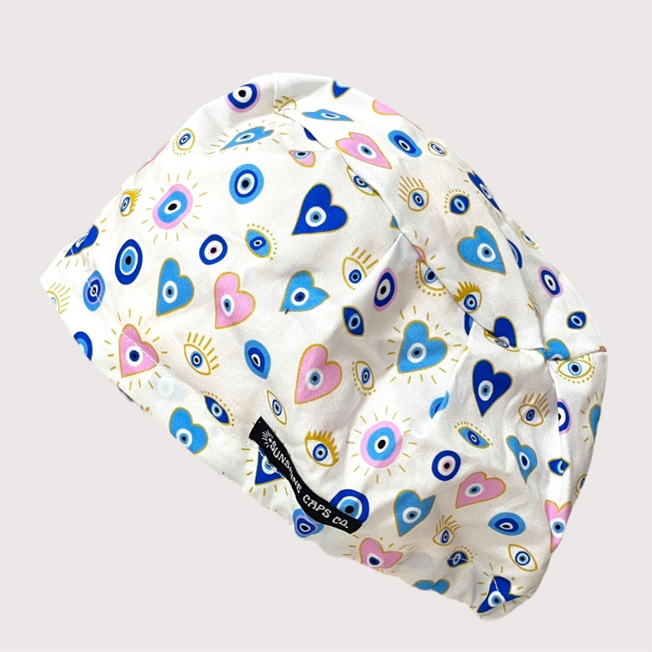 Our Love & Protection Evil Eye scrub cap will bring good vibes and protect you on the hardest of days! It is made of premium quality fabric that is breathable, comfortable, and durable. The Euro style provides full coverage and a secure fit for all hair types, ensuring you stay comfortable and stylish all day long. The cap also includes an adjustable toggle for a customizable fit.