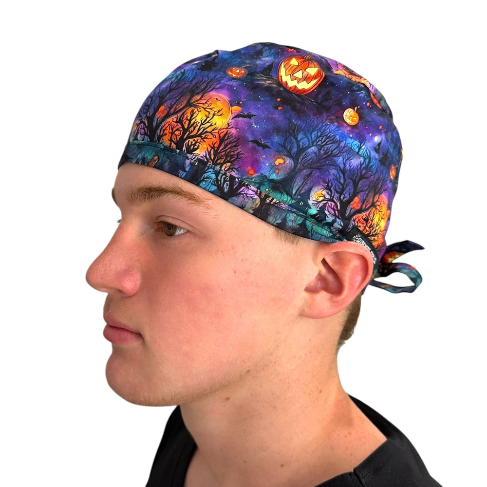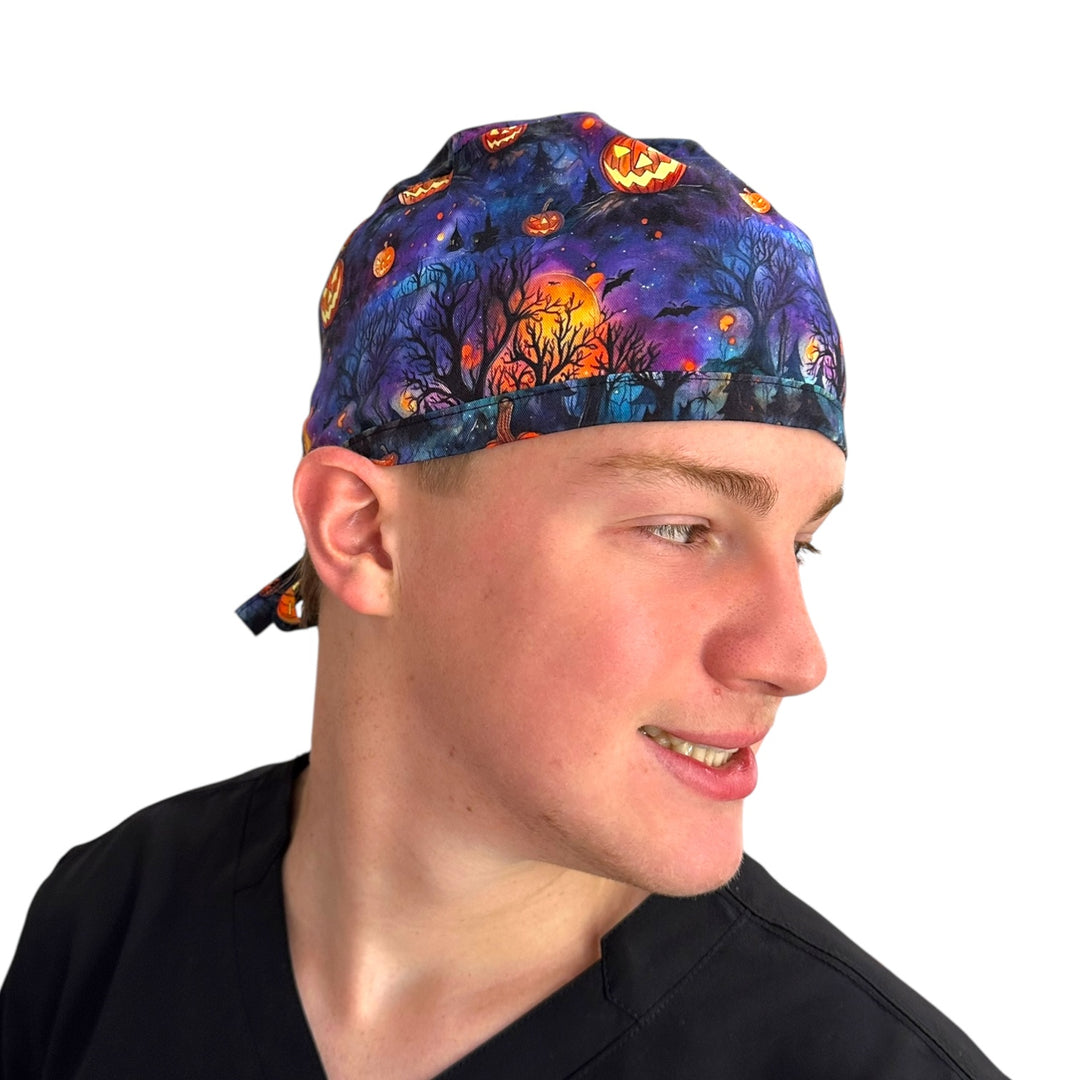 Tie-Back: A unisex surgical scrub cap that offers a little more room than our classic cap. Short-medium length hair can be tucked in for full coverage or worn out the back. It can be flipped along the edge, or left unfolded. A sweatband runs along the forehead. 100% Cotton
