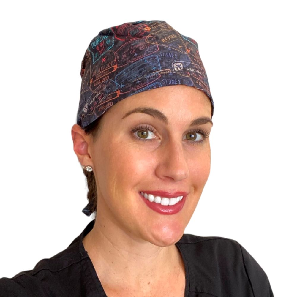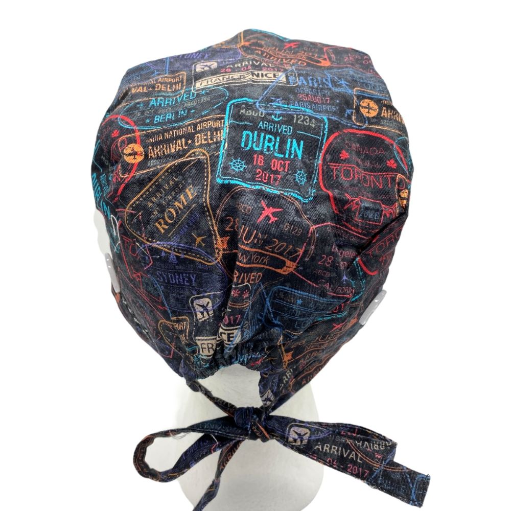 Are you a traveler at heart? Do you yearn to explore new places and discover new cultures? If so, this Travel surgical scrub cap is perfect for you! With a playful and colorful design featuring travel stampsĀ on a dark background, it's sure to satisfy your wanderlust.