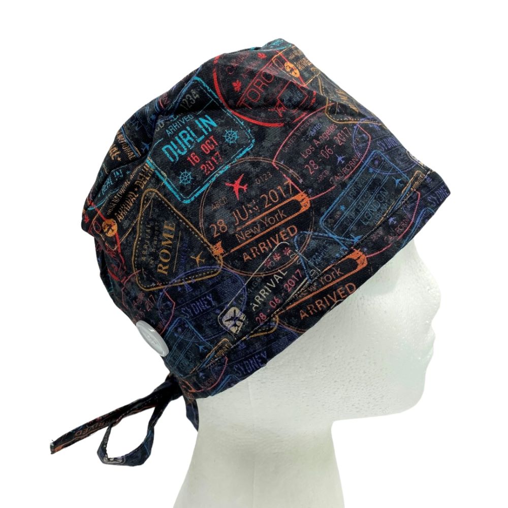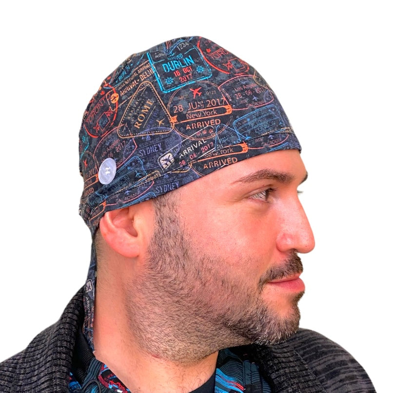 travel passport Men's Scrub Cap Surgical Hat, by Sunshine Caps Co