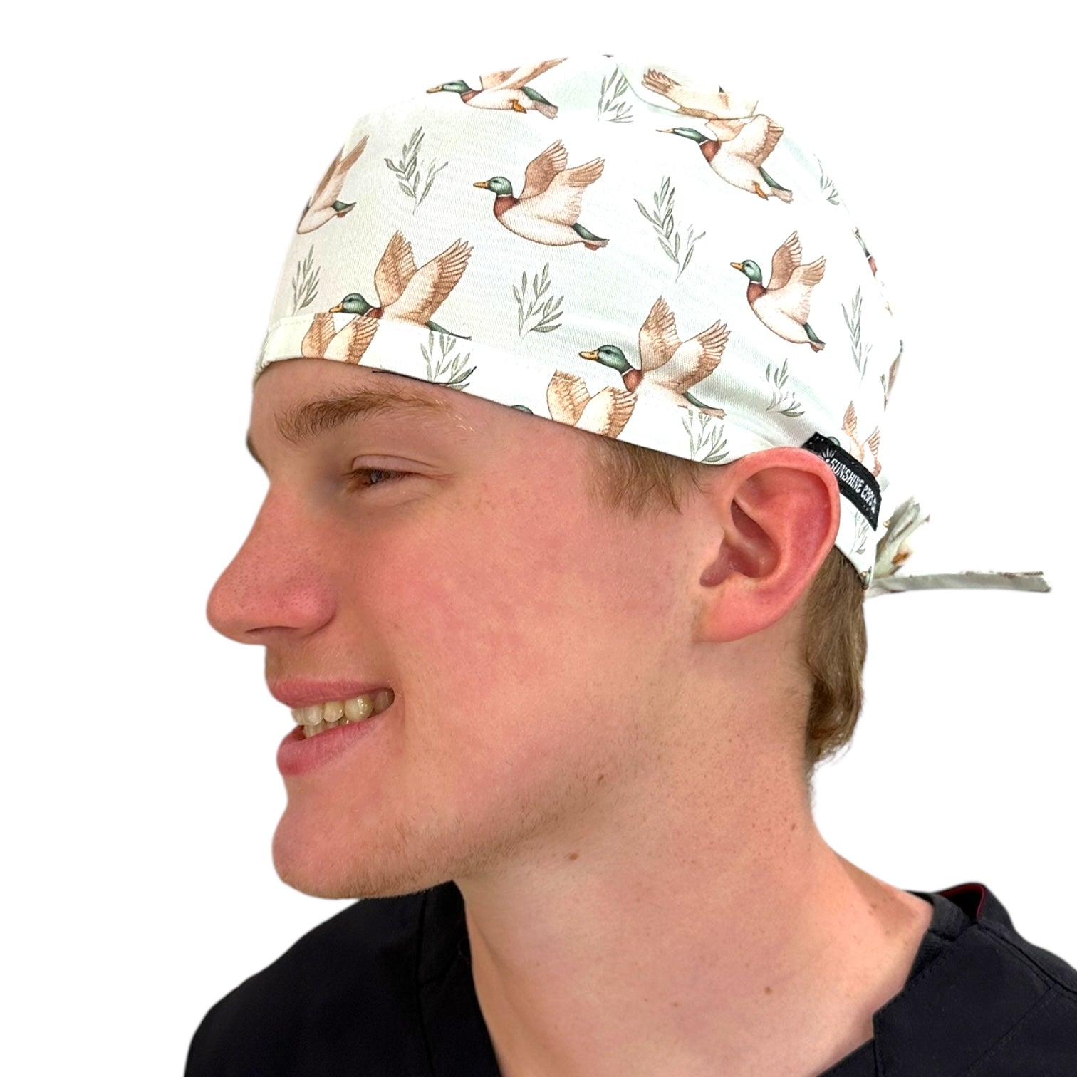 mallard duck Men's Scrub Cap Surgical Hat, by Sunshine Caps Co