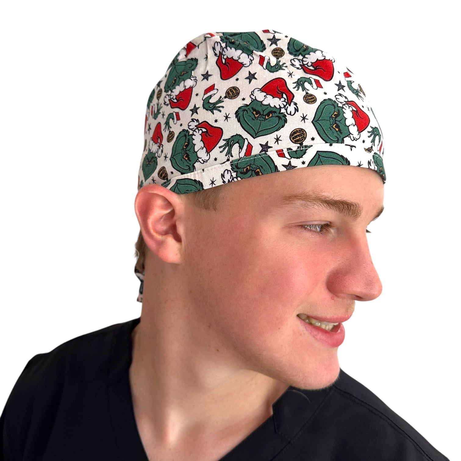 grinch christmas Men's Scrub Cap Surgical Hat, by Sunshine Caps Co