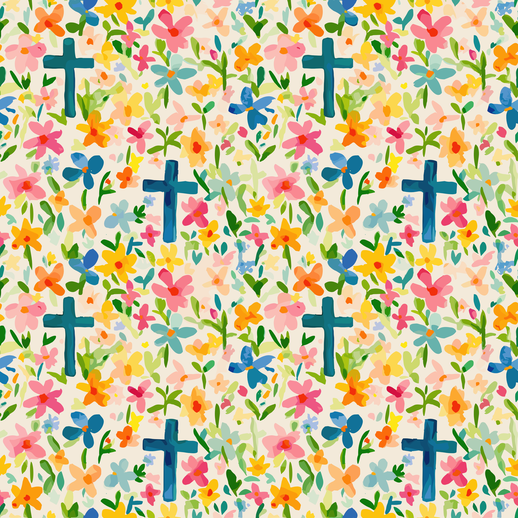 Designed with a sleek, tailored euro silhouette, this cap sits smoothly around the head while offering gentle fullness through a subtle back pleat. The vibrant watercolor blooms paired with soft blue crosses create a cheerful, uplifting look that remains polished and professional.