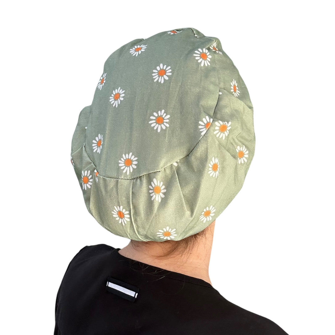 Our simple Sage Floral scrub cap is a pretty addition to your scrub cap collection. The Euro style provides full coverage and a secure fit for all hair types, ensuring you stay comfortable and stylish all day long. Our euro scrub cap also includes an adjustable toggle for a customizable fit.