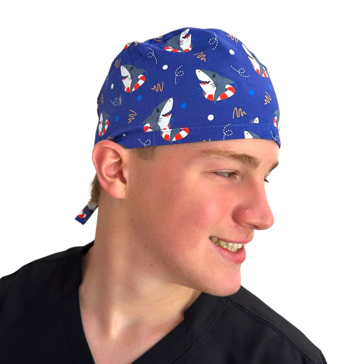 patriotic sharks Men's Scrub Cap Surgical Hat, by Sunshine Caps Co