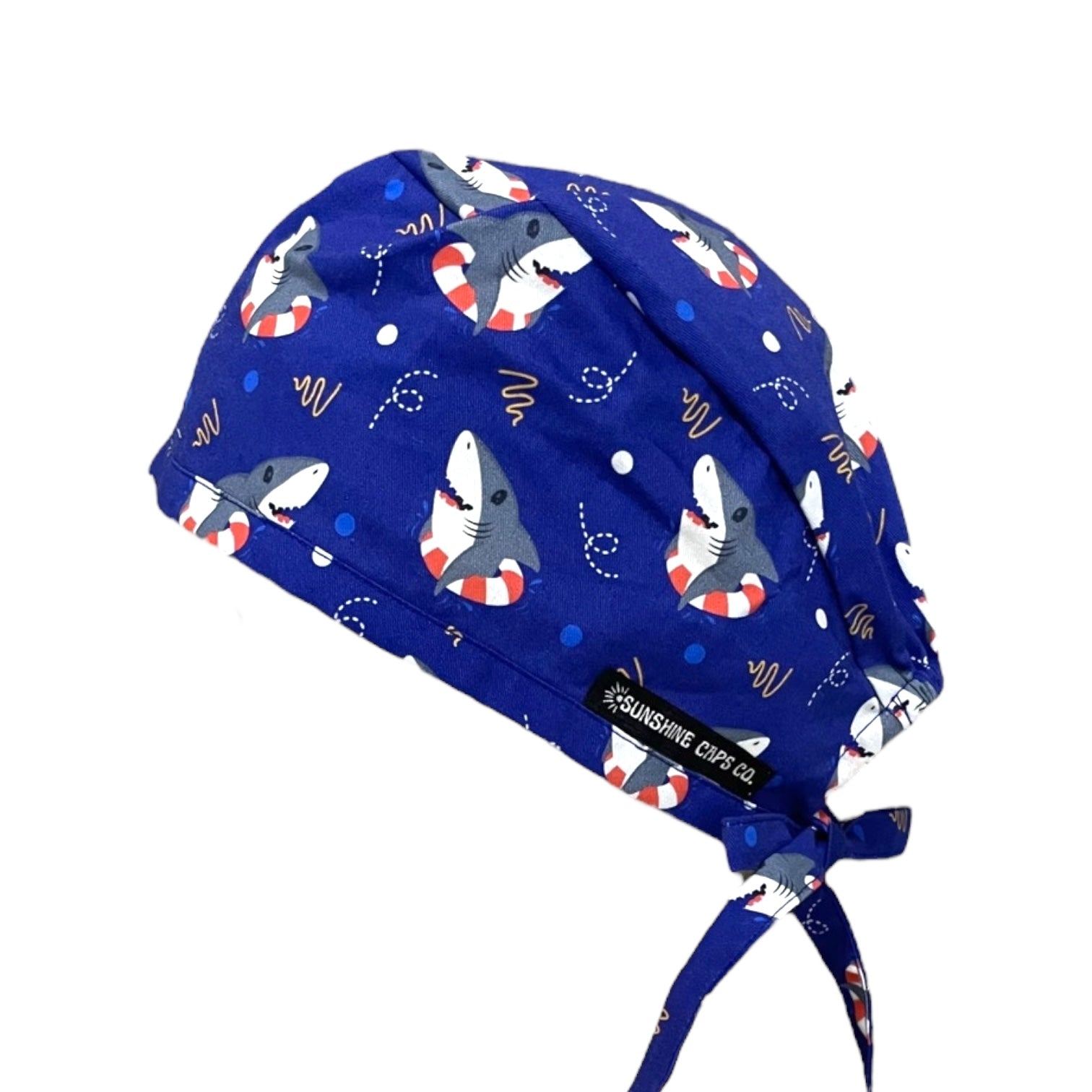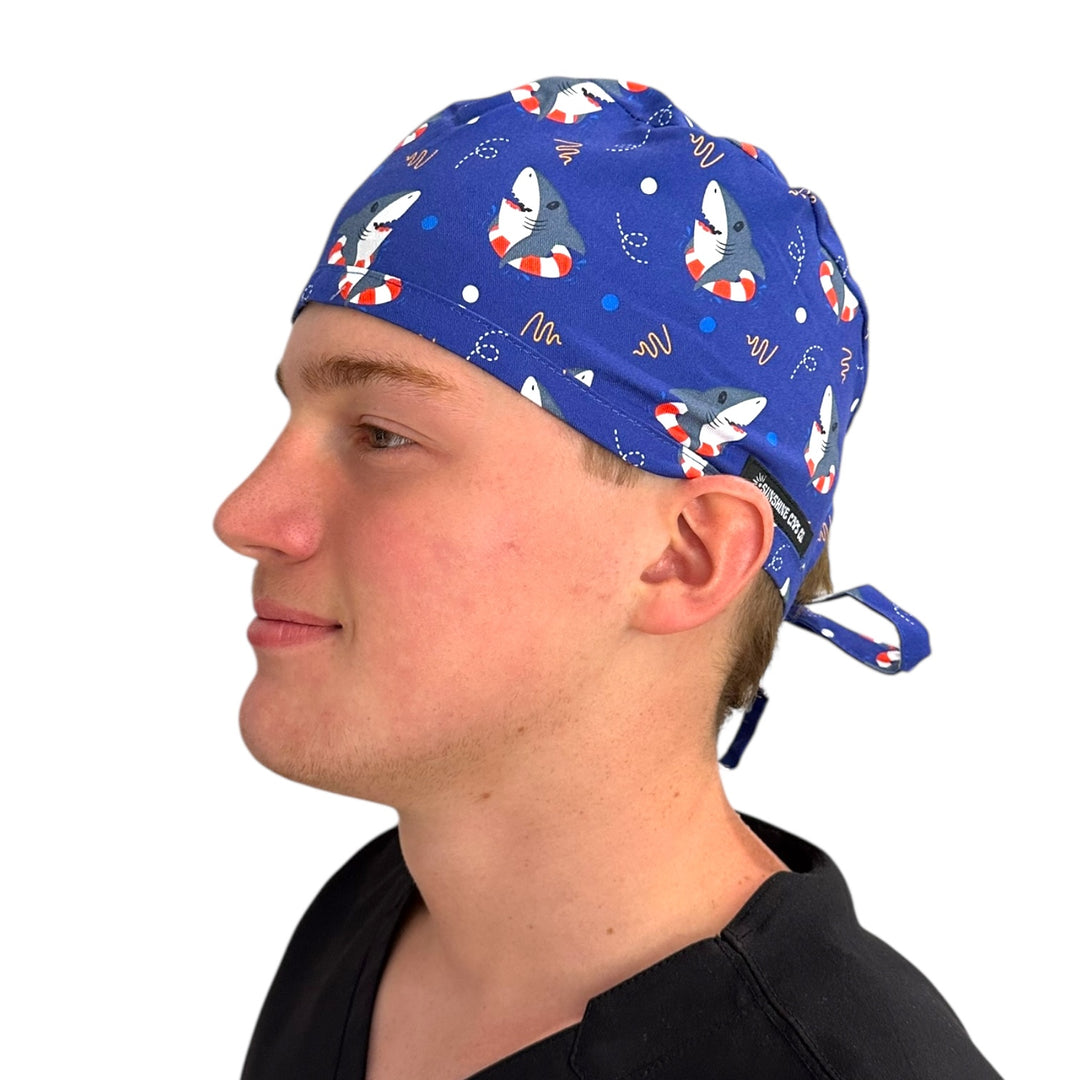 Looking for a way to show your patriotic spirit while at work? Look no further than the shark floaties scrub cap!