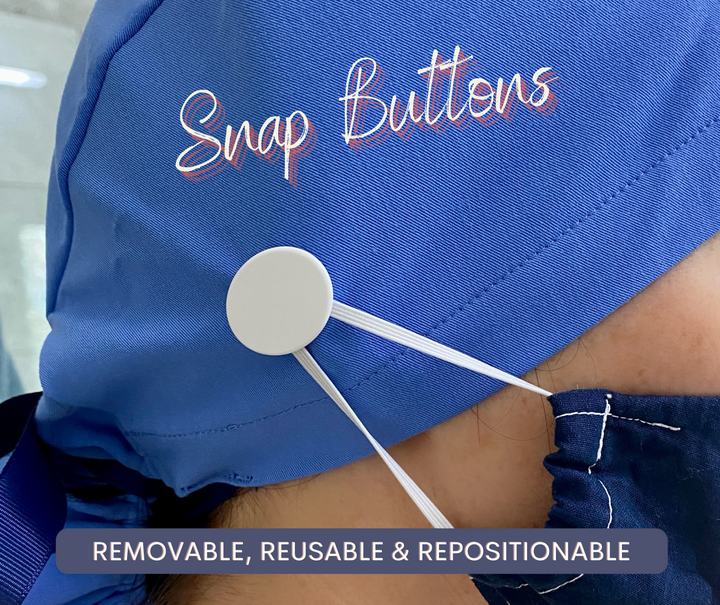 Tie-Back: A unisex surgical scrub cap that offers a little more room than our classic cap. Short-medium length hair can be tucked in for full coverage or worn out the back. It can be flipped along the edge, or left unfolded. A sweatband runs along the forehead. 100% Cotton